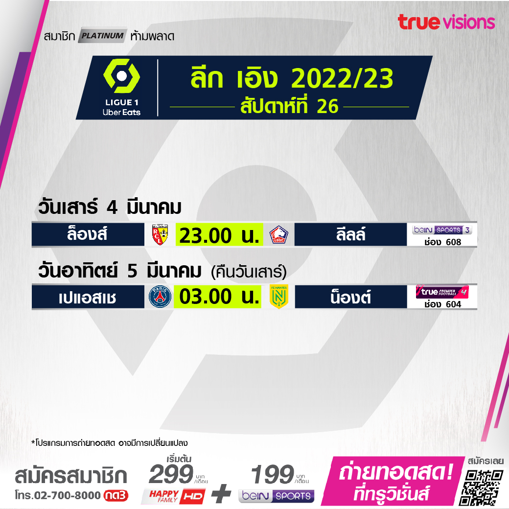 Lens vs Lille เวลา 23.00-01.00 ทางช่อง beIN 3 (608)