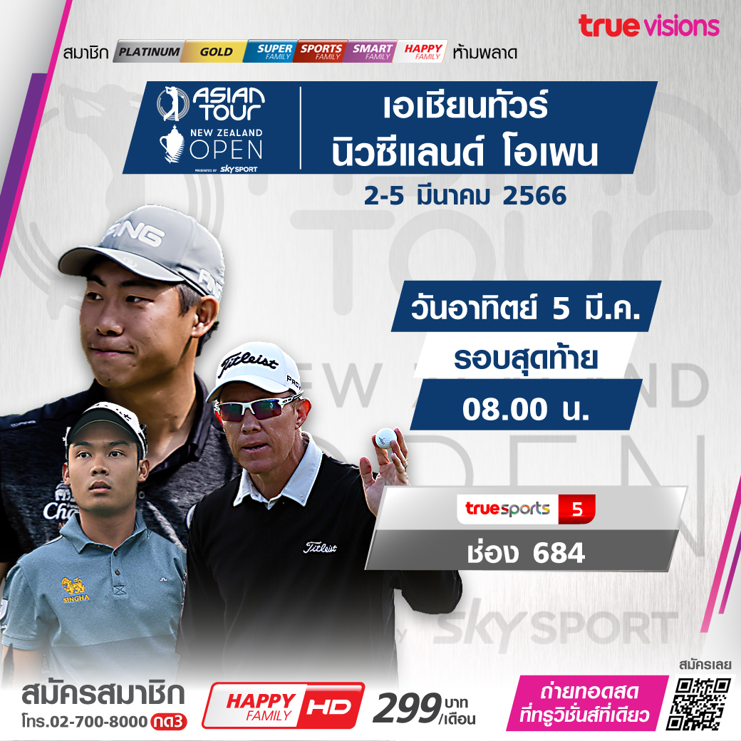 กอล์ฟ เอเชี่ยน ทัวร์ รายการ นิวซีแลนด์ โอเพ่น ในรอบสุดท้าย สดจากสนาม มิลล์บรู๊ค รีสอร์ท ใครจะคว้าแชมป์ไปครอง ชมสด ทาง ทรูวิชั่นส์ ที่เดียว