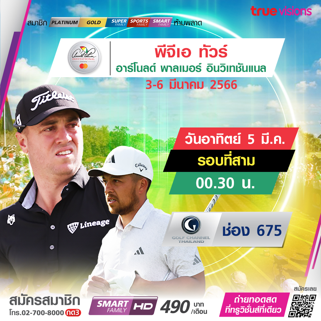 พลาดไม่ได้สำหรับแฟนๆ กีฬากอล์ฟสัปดาห์นี้ กับศึกพีจีเอ ทัวร์ รายการ อาร์โนลด์ พาลเมอร์ อินวิเตชั่นแนล ที่ ออร์ลันโด้ ฟลอริด้า ชิงเงินรางวัลมหาศาลเกือบ 700 ล้านบาท จากสนาม เบย์ฮิลล์ คลับ แอนด์ ลอดจ์ ในรอบที่สาม ชมสดทางทรูวิชั่นส์