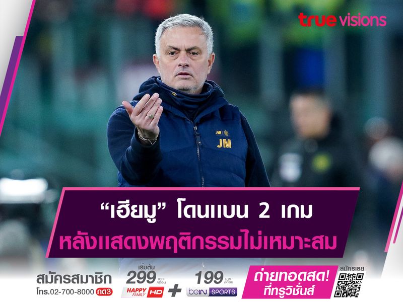 โชเซ่ มูรินโญ่ เทรนเนอร์คนดังของ "หมาป่าเหลืองเเดง" อาแอส โรม่า ทีมมีชื่อเเห่ง กัลโช่ เซเรีย อา อิตาลี ถูกสั่งแบนห้ามคุมทัพเป็นเวลา 2 เกม หลังจากที่ เจ้าตัว แสดงพฤติกรรมไม่เหมาะสมในเกมที่ โรม่า พลิกพ่าย เครโมเนเซ่ 1-2 เมื่อช่วงสุดสัปดาห์ที่ผ่านมา