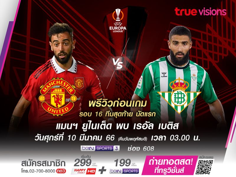 ศึกยูฟ่า ยูโรป้า ลีก รอบ 16 ทีมสุดท้ายนัดแรก แมนฯ ยูไนเต็ด จากอังกฤษ จะรับการมาเยือนของ เรอัล เบติส จากสเปน โดยเกมนี้ แมนฯ ยูไนเต็ด เจ้าถิ่น ต้องการที่จะใช้เกมนี้เรียกความมั่นใจของตัวเองกลับมาอีกครั้ง หลังผิดหวังในเกมที่พ่ายต่อ ลิเวอร์พูล ไปในเกมล่าสุด หลังก่อนหน้าเกมแดงเดือดพวกเขามีสถิติไม่แพ้ใครมาถึง 11 เกมติดต่อกัน ขณะที่ เรอัล เบติส กำลังอยู่ในฟอร์มที่ดี ไม่แพ้ใครมา 4 เกมติดต่อกัน แถมเกมล่าสุดยังสามารถบุกไปยันเสมอ เรอัล มาดริด ในเกม ลา ลีกา มาได้ 0-0 อีกด้วย