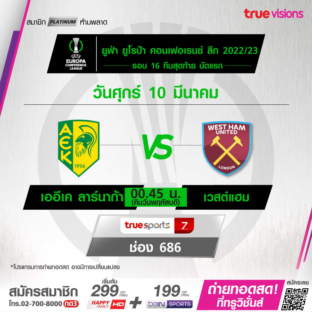 Larnaca vs West Ham เวลา 00.45-02.45 ทางช่อง TS 7 (686)