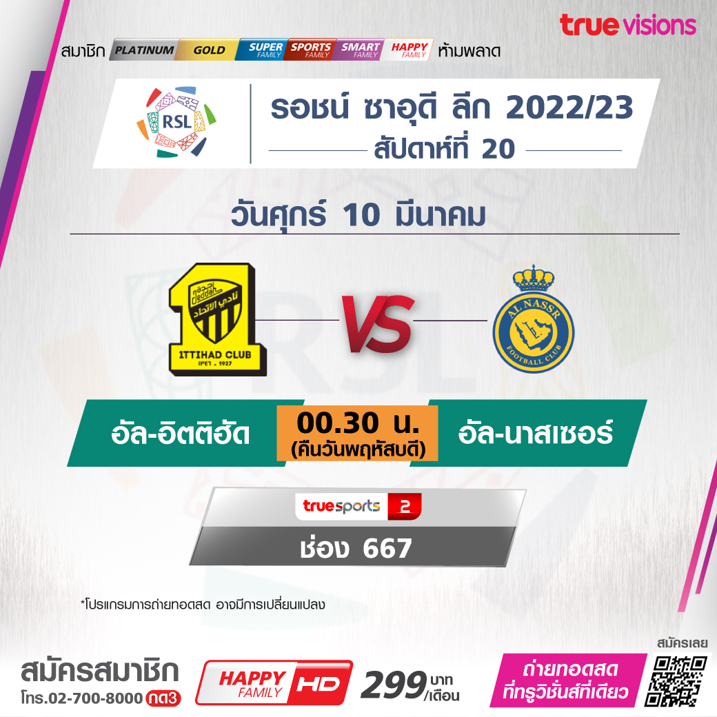 Al-Ittihad vs Al-Nassr เวลา 00.30-02.30 ทางช่อง TS 2 (667)