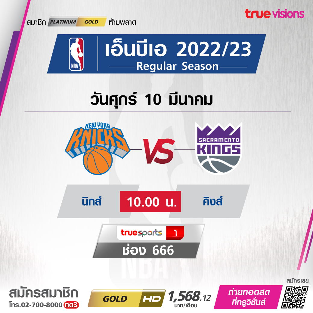 วันศุกร์ 10 มี.ค. Knicks Vs Kings เวลา 10.00 ทางช่อง TS 1