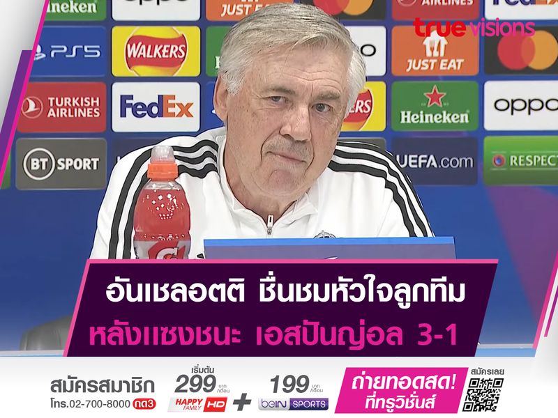 คาร์โล อันเชลอตติ นายใหญ่ของ "ราชันชุดขาว" เรอัล มาดริด ยอดทีมเเห่งเวที ลา ลีกา สเปน ออกโรงชื่นชมลูกทีมทุกคน หลังจากพลิกกลับมาเอาชนะ เอสปันญ่อล ได้สำเร็จ 3-1 เมื่อคืนที่ผ่านมา