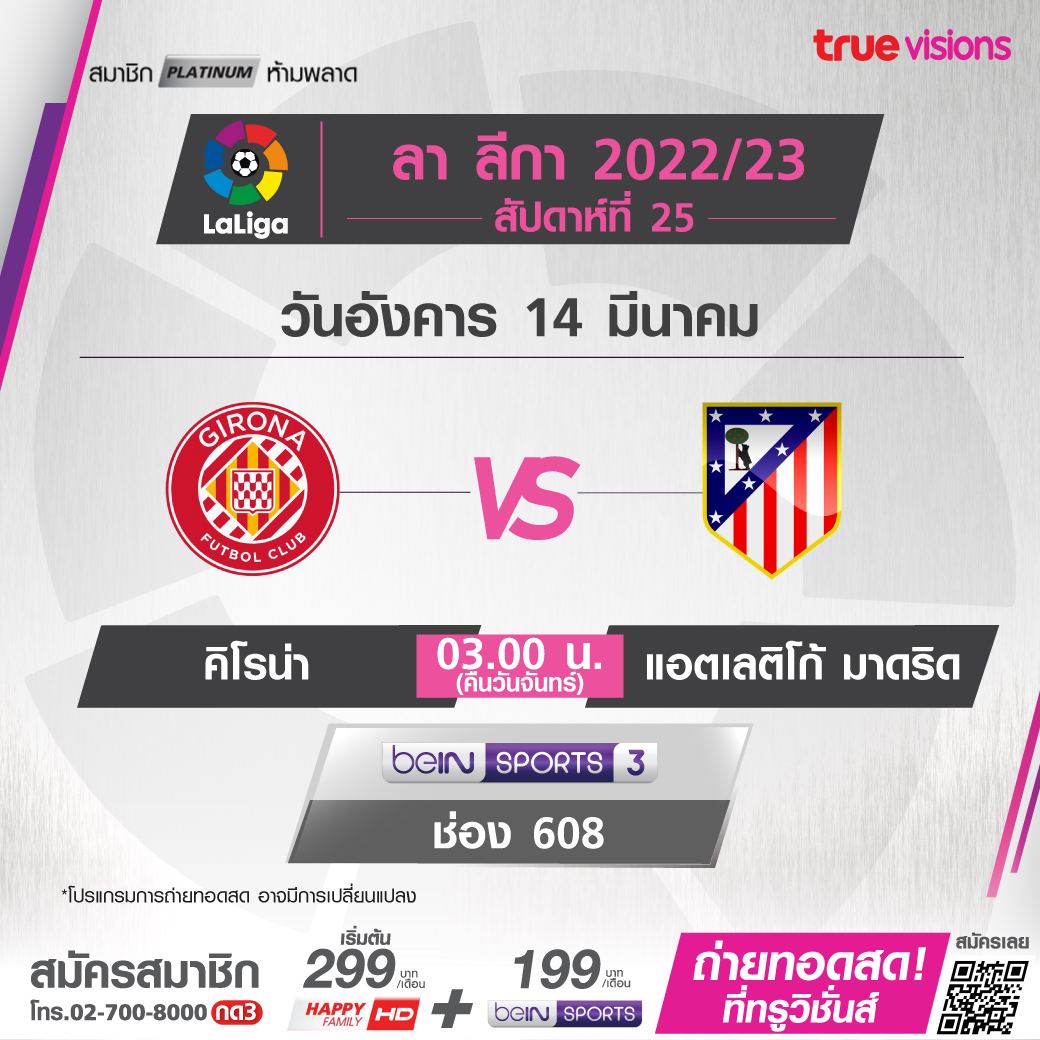 Girona vs Atletico เวลา 03.00-05.00 ทางช่อง beIN 3 (608)