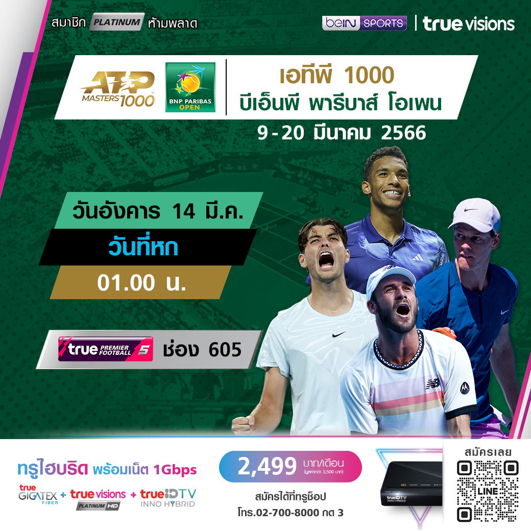 เทนนิส เอทีพี เวิลด์ ทัวร์ 1000 ซีรี่ส์ รายการ บีเอ็นพี พาริบาส์ โอเพ่น ในวันที่หก รวมเหล่านักเทนนิสฝีมือระดับโลกเข้าชิงชัยในรายการนี้ ชมสด จุใจ จากอินเดียนเวลส์ ชมสด ทาง ทรูวิชั่นส์ ที่เดียว