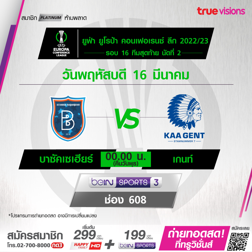 Basaksehir vs Gent เวลา 00.00-02.00 ทางช่อง beIN 3 (608)
