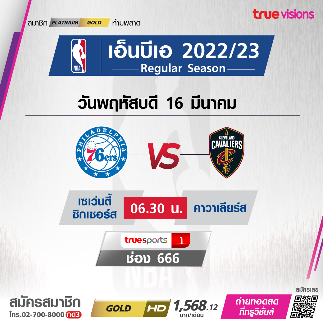 วันพฤหัสบดี 16 มี.ค. 76ERS Vs Cavaliers เวลา 06.30 ทางช่อง TS 1 (666)