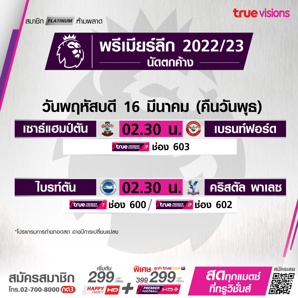 Southampton vs Brentford เวลา 02:30 - 04:30 ทางช่อง TPF 3 (603)