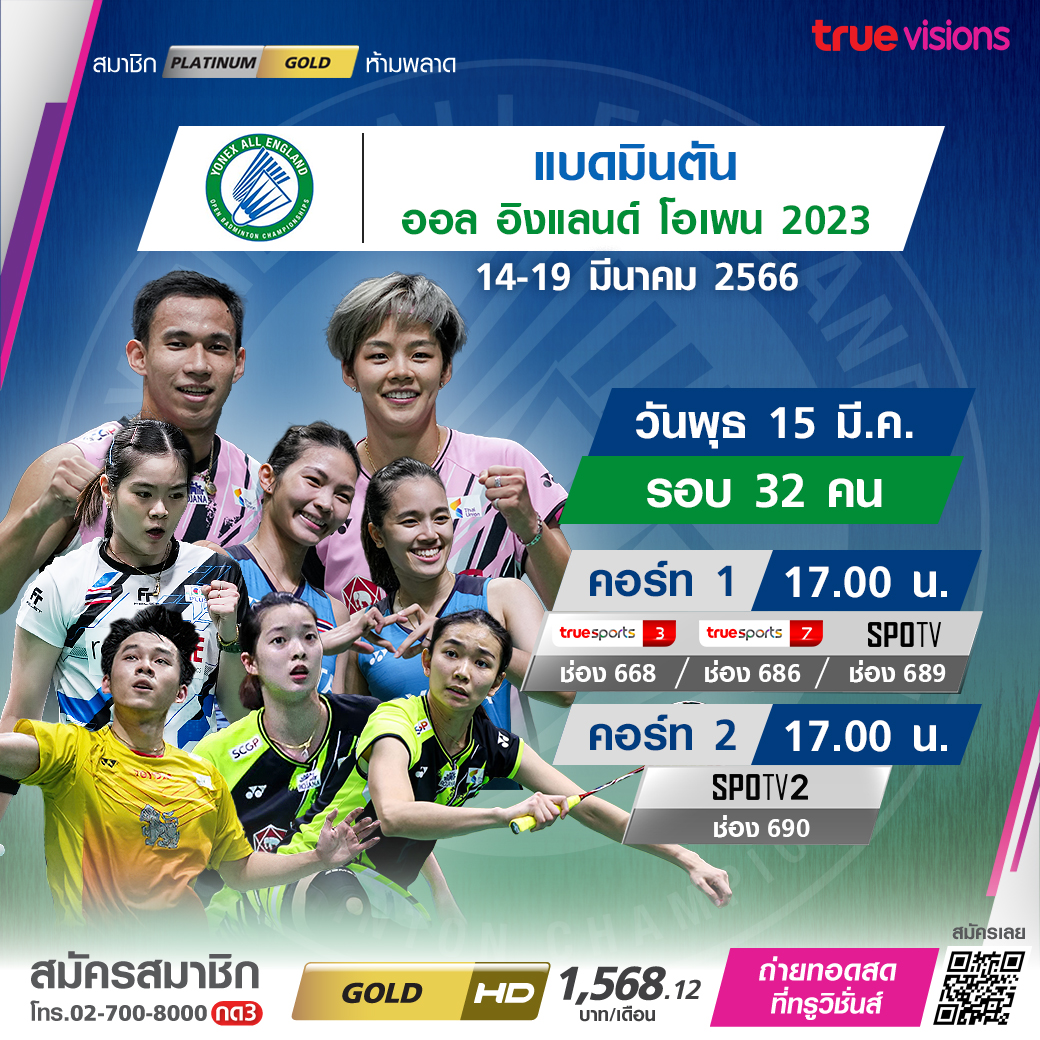 ร่วมเชียร์นักตบลูกขนไก่ไทย กับแบดมินตันรายการสุดยอดยิ่งใหญ่ระดับโลก ออล อิงแลนด์ โอเพ่น แบดมินตัน แชมเปี้ยนชิพ 2023 ดาวดังของโลกมาร่วมแข่งขันและลุ้นแชมป์กันคับคั่ง ชมสด จุใจจากเมืองเบอร์มิงแฮม ประเทศอังกฤษ ครบทุกรอบ ชมสด ทาง ทรูวิชั่นส์ ที่เดียว