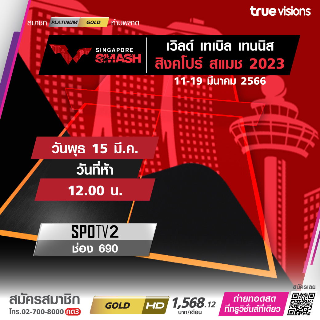 รอบ 32 คน เวลา 17.00 คอร์ท 2 ทางช่อง SPOTV 2 (690)