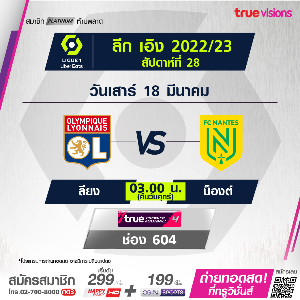 Lyon vs Nantes เวลา 03.00-05.00 ทางช่อง TPF 4 (604)