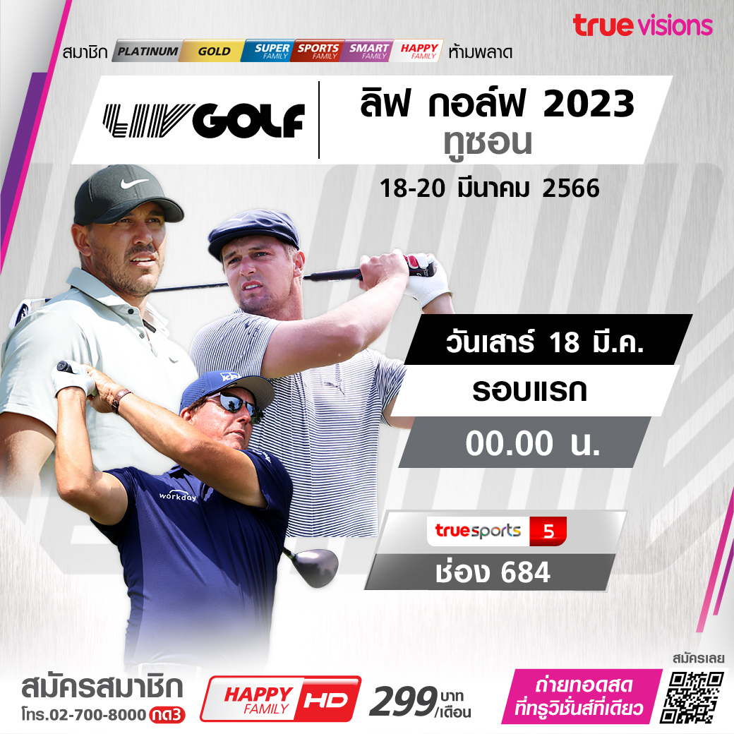 กอล์ฟลีกดังที่กำลังมาแรงและเป็นกระแสไปทั่วโลก ลิฟ กอล์ฟ 2023 ความสดใหม่ของเกมกอล์ฟสุดเร้าใจ รายการที่ 2 ของ ฤดูกาล นัดดวลกันที่ ทูซอน อริโซน่า โปรทั้ง 48 คน ลุ้นแชมป์ทั้งประเภททีมและบุคคล พร้อมเงินรางวัลมหาศาล 25 ล้านเหรียญสหรัฐฯ ชมสดครบทุกรอบ ชมสด ทาง ทรูวิชั่นส์ ที่เดียว