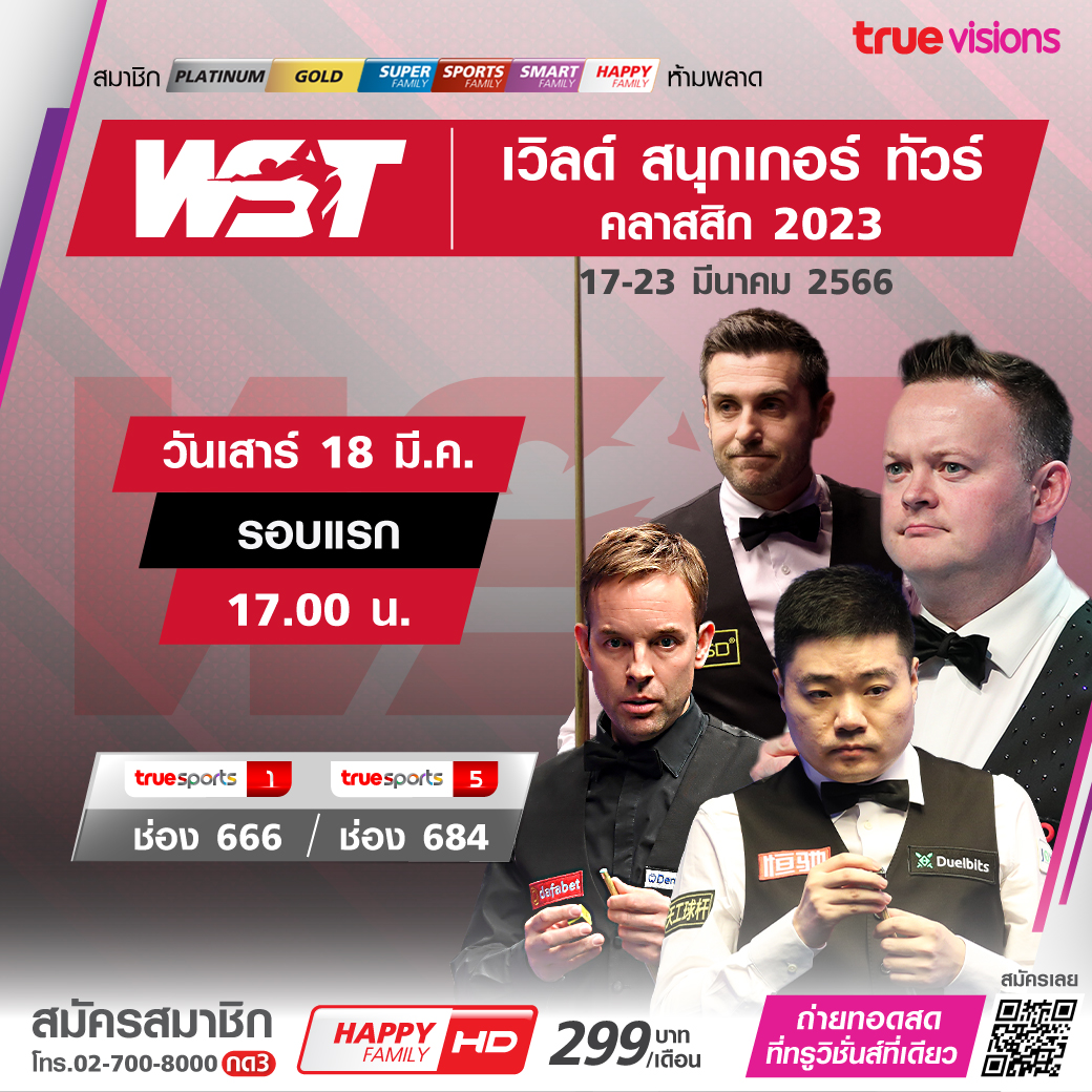 แฟนๆ กีฬาสนุกเกอร์ห้ามพลาด กับความเข้มข้น เร้าใจ ของการแข่งขันรายการเก็บคะแนนสะสมโลก โค้งสุดท้ายของฤดูกาล 2022/23 มือดังแห่ร่วมดวลคิว รายการ เวิลด์ สนุ้กเกอร์ ทัวร์ คลาสสิก สดครบจุใจ ร่วมลุ้นกันว่าใครจะสมหวังเป็นแชมป์คนใหม่ ชมสดจุใจ ทาง ทรูวิชั่นส์ ที่เดียว