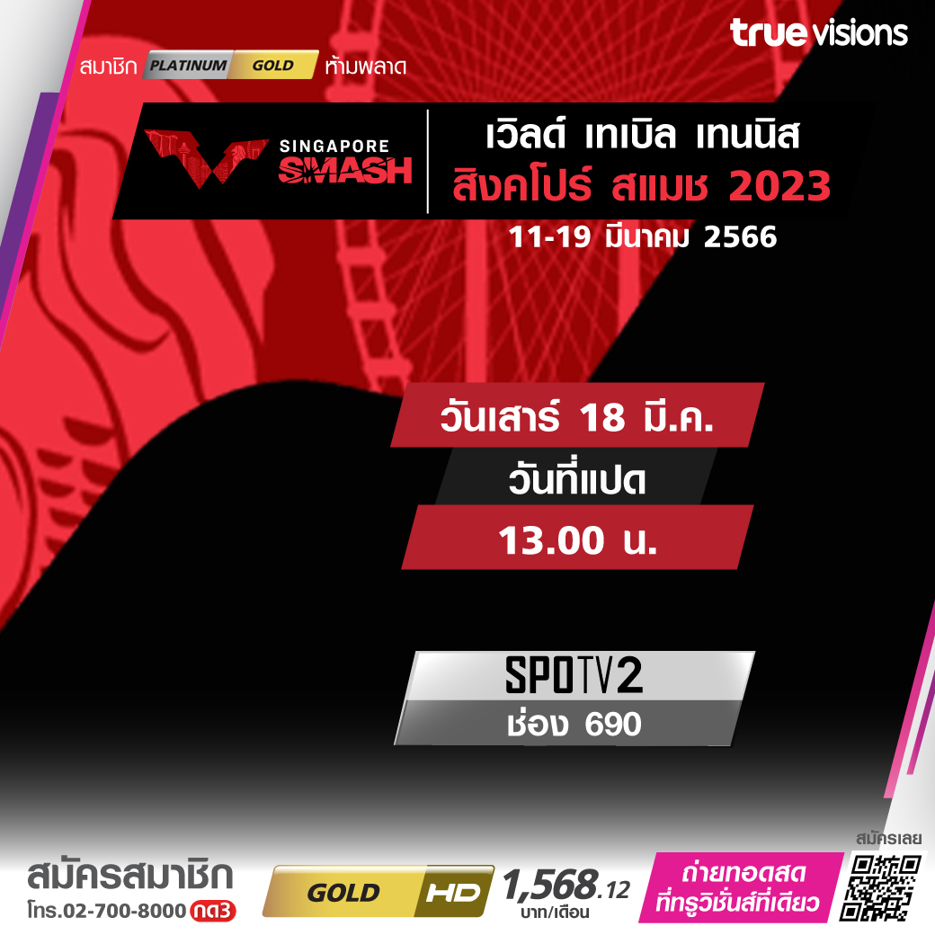 ศึก เวิลด์ เทเบิล เทนนิส สิงคโปร์ สแมช 2023 ที่รวบรวมนักกีฬามือระดับโลกของวงการมาพิสูจน์ฝีมือกัน ชมสดจุใจ ครบทุกรอบ ทั้งคู่และเดี่ยว ชมสด ทาง ทรูวิชั่นส์ ที่เดียว
