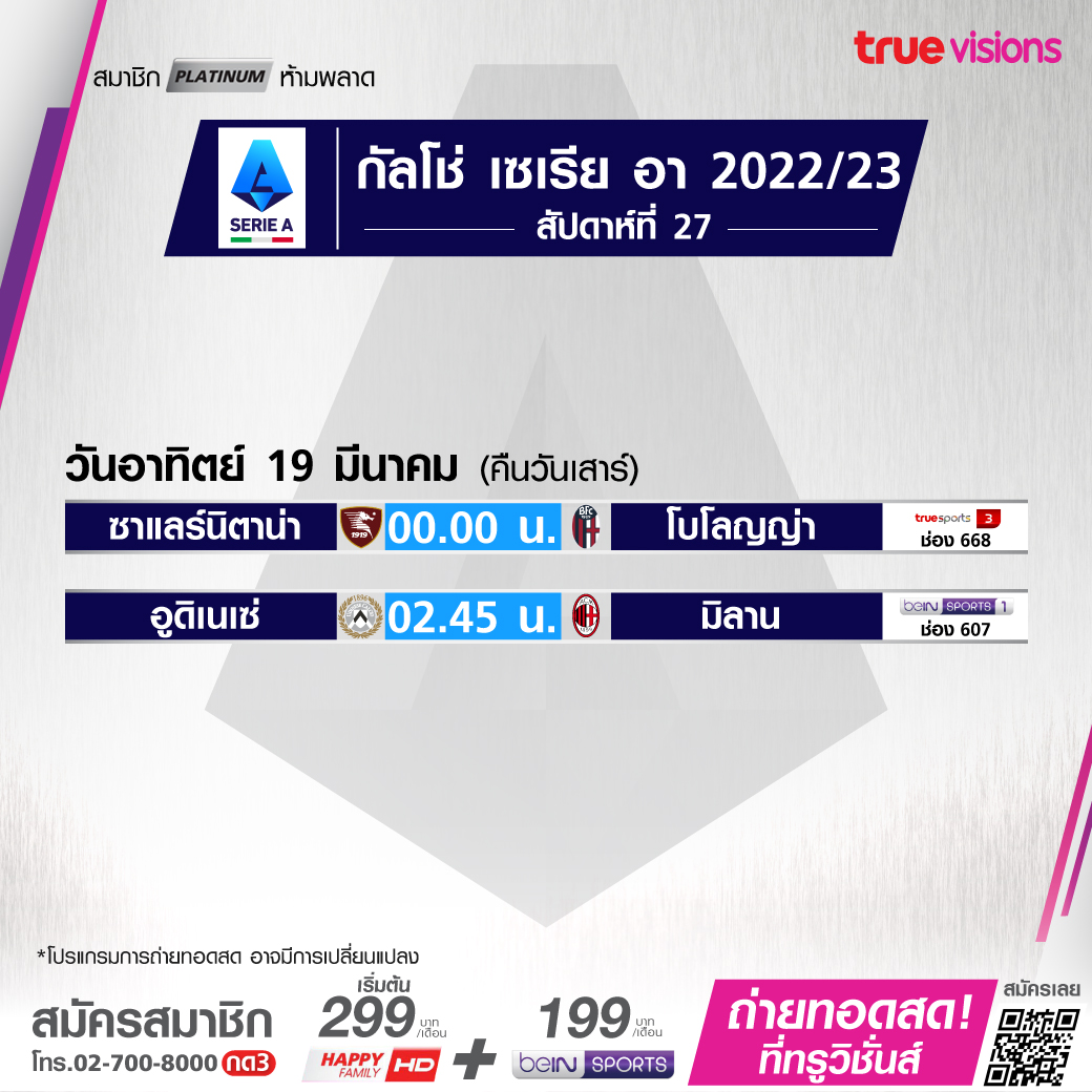Salernitana vs Bologna เวลา 00.00-02.00 ทางช่อง TS 3 (668)