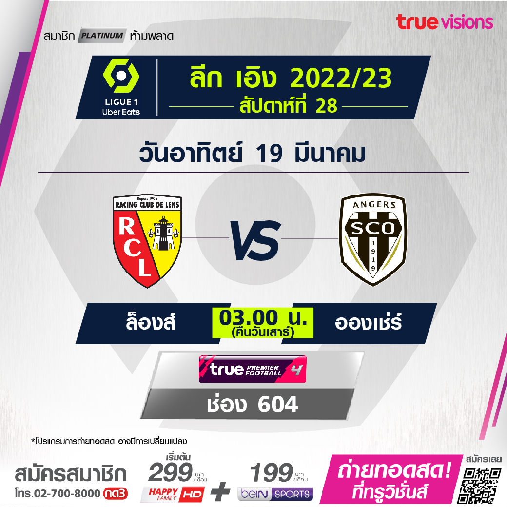 Lens vs Angers เวลา 03.00-05.00 ทางช่อง TPF 4 (604)