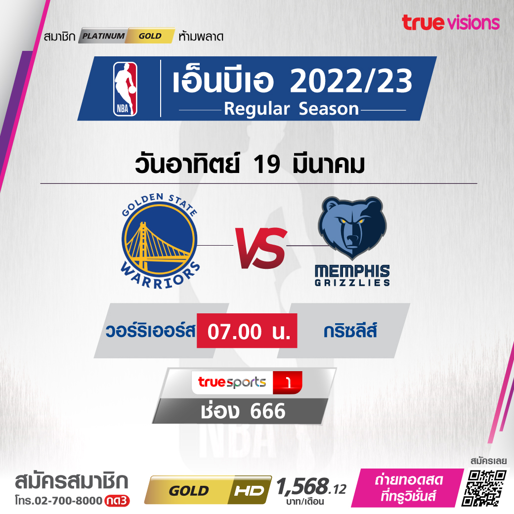วันอาทิตย์ 19 มี.ค. Warriors Vs Grizzlies เวลา 07.00 ทางช่อง TS 1 (666)