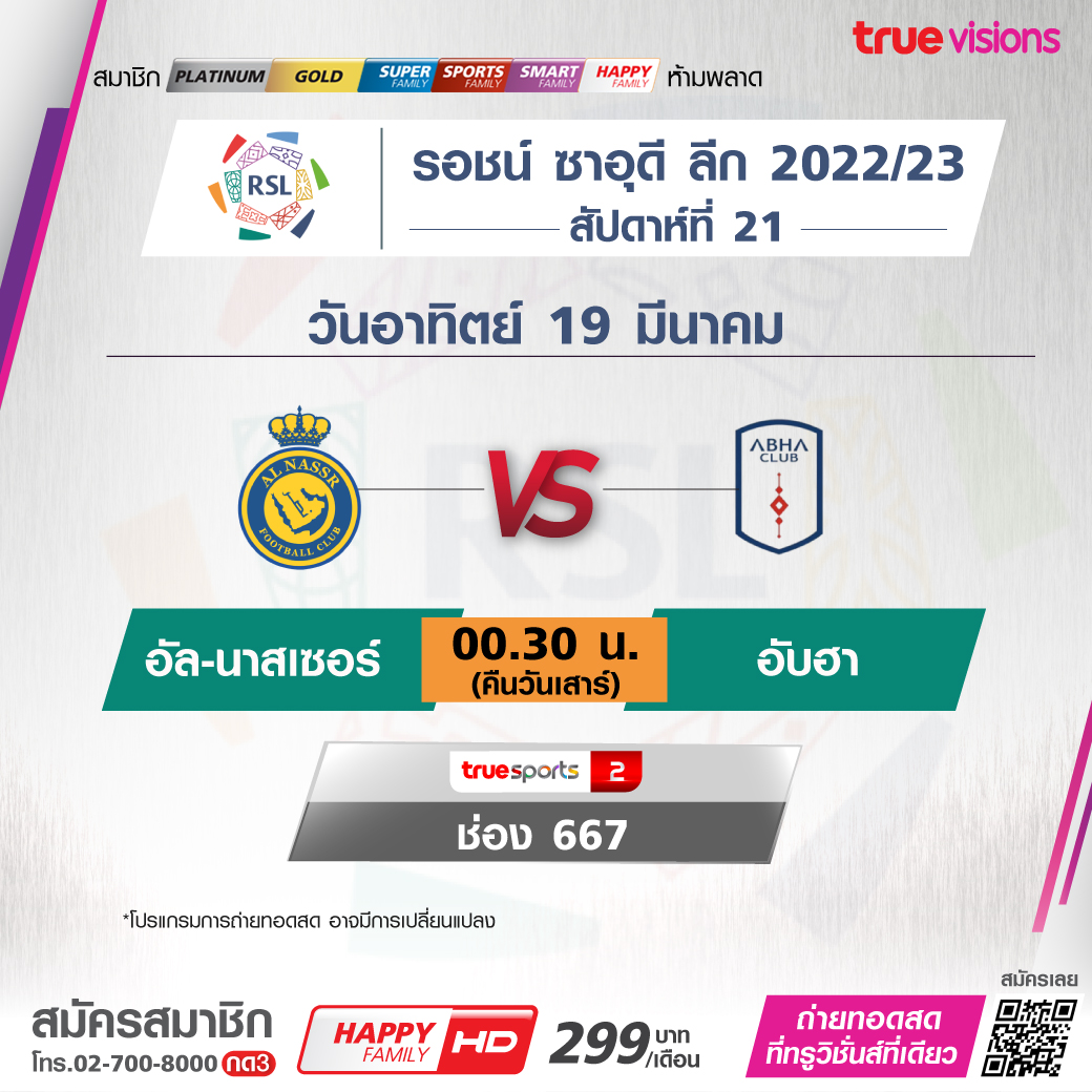 Al-Nassr vs Abha เวลา 00.30-02.30 ทางช่อง TS 2 (667)