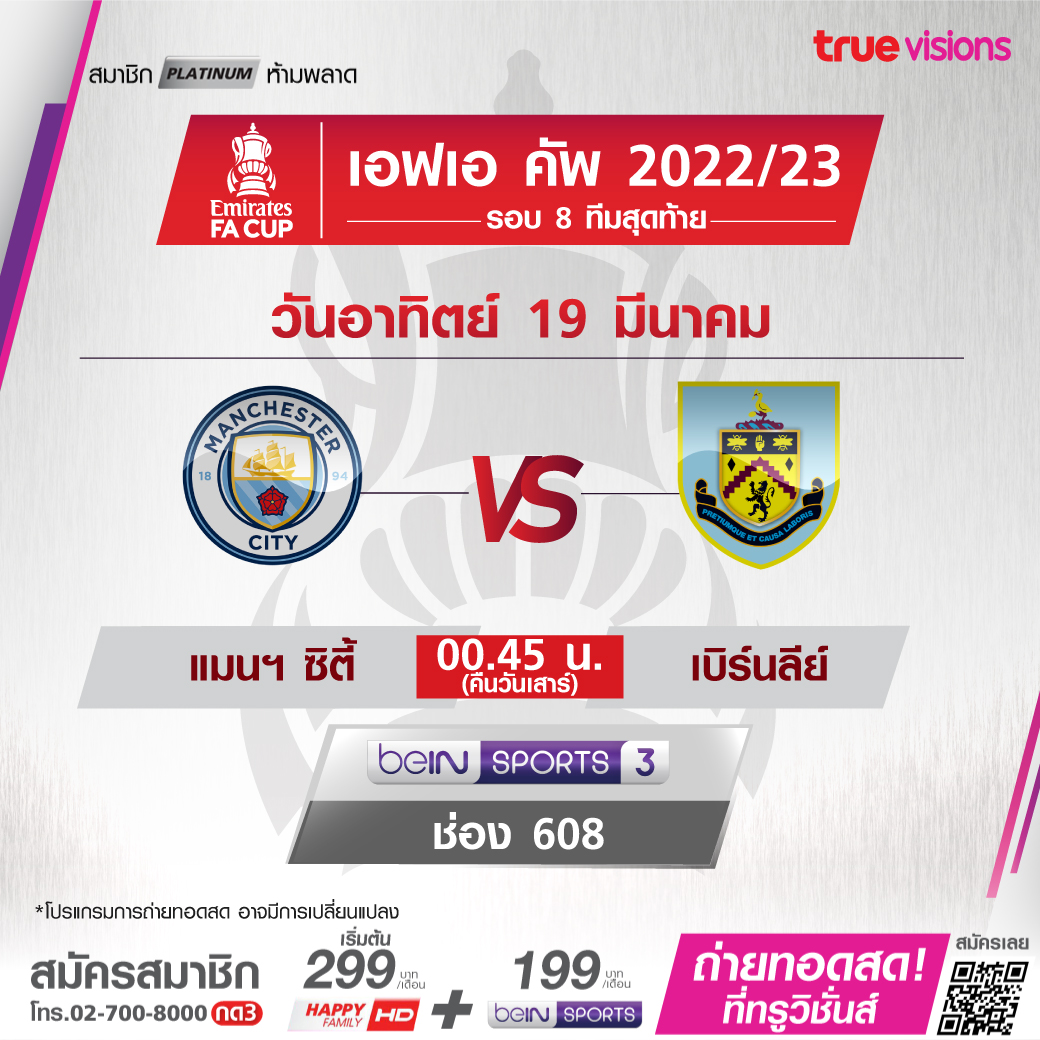 Man City vs Burnley เวลา 00.45-02.45 ทางช่อง beIN 3 (608)