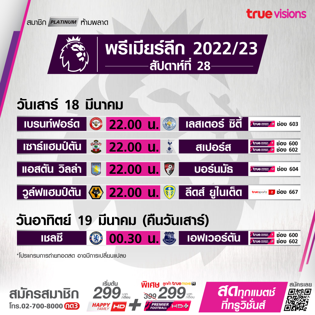 Brentford vs Leicester City เวลา 22:00 - 00:00 ทางช่องTPF 3 (603)