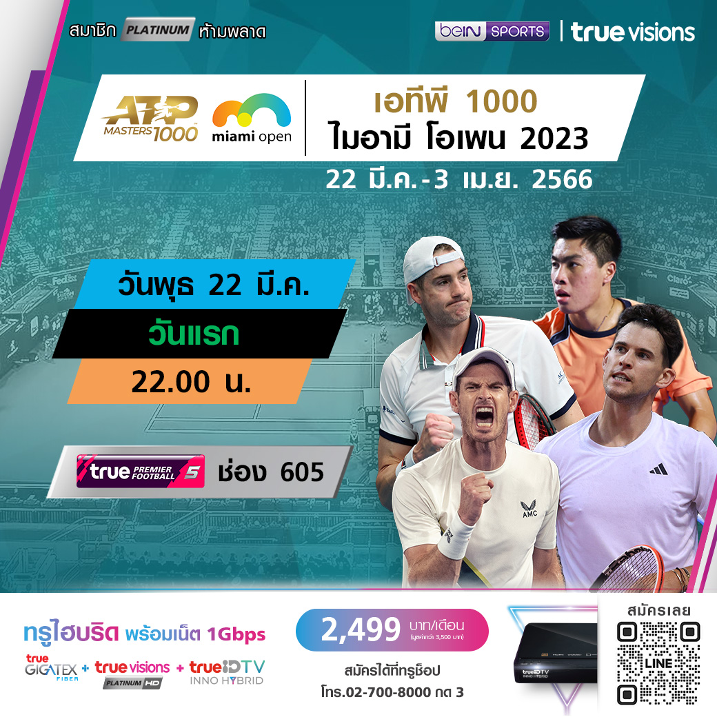 แฟนกีฬาเทนนิสมันส์กันต่อเนื่องกับเทนนิสชายรายการใหญ่ ระดับ เอทีพี เวิลด์ ทัวร์ 1000 ซีรีส์ ไมอามี่ โอเพ่น ซูเปอร์สตาร์ของโลกมาร่วมแข่งขันและลุ้นแชมป์กันอย่างคับคั่งที่ ฮาร์ด ร็อค สเตเดี้ยม ในไมอามี่ รัฐฟลอริด้า ชมสด ครบจุใจทุกรอบ