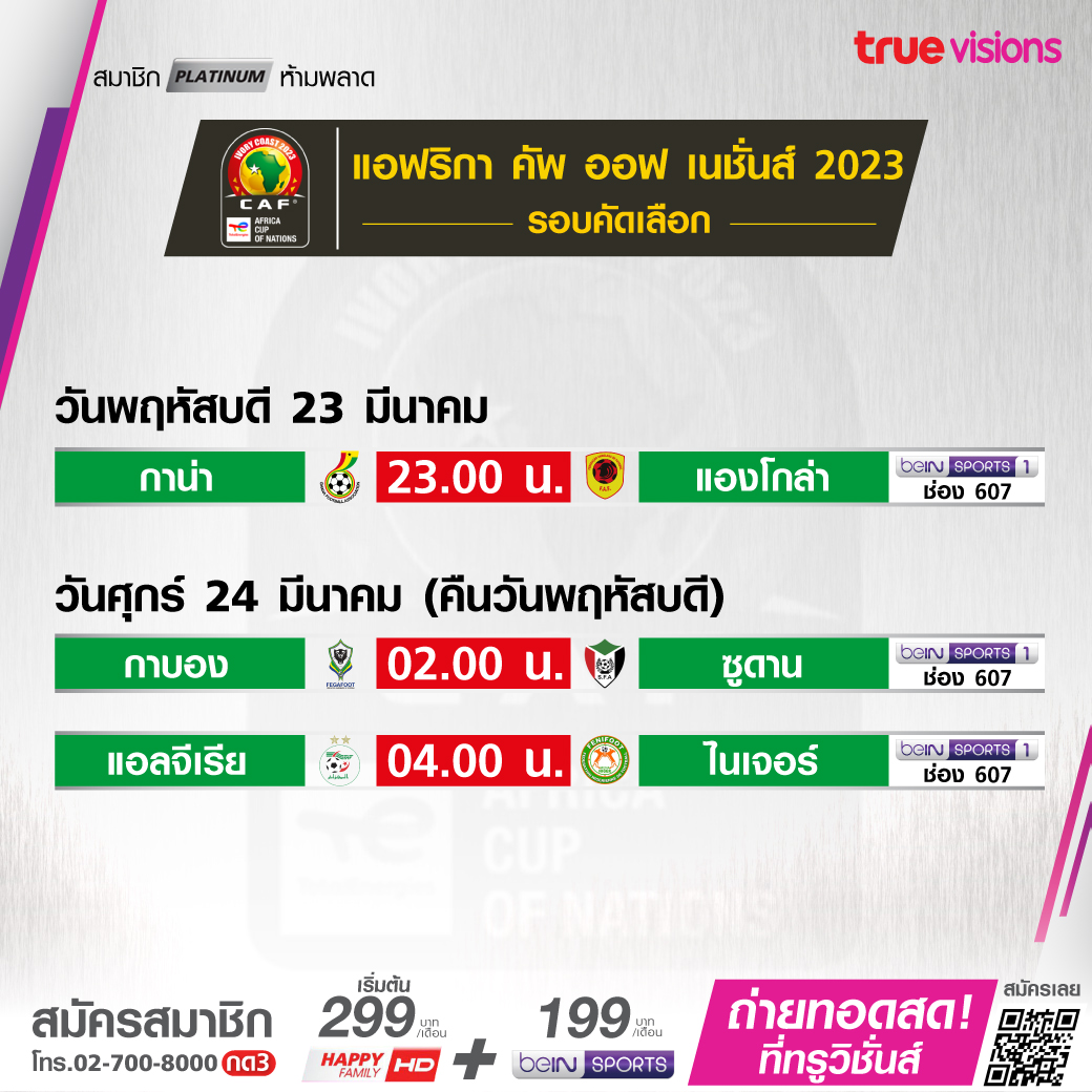 Ghana vs Angola เวลา 23.00-01.00 ทางช่อง beIN 1 (607)