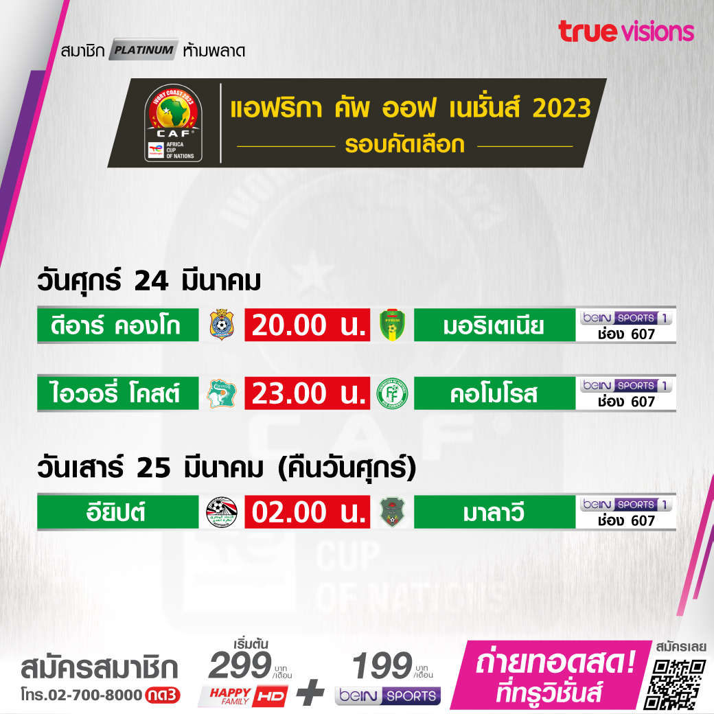 DR Congo vs Mauritania เวลา 20.00-22.00 ทางช่อง beIN 1 (607)