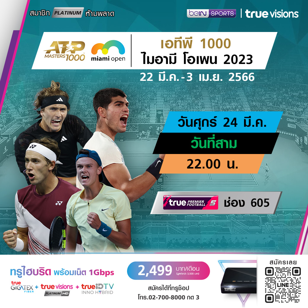 แฟนกีฬาเทนนิสมันส์กันต่อเนื่องกับเทนนิสชายรายการใหญ่ ระดับ เอทีพี เวิลด์ ทัวร์ 1000 ซีรีส์ ไมอามี่ โอเพ่น ซูเปอร์สตาร์ของโลกมาร่วมแข่งขันและลุ้นแชมป์กันอย่างคับคั่งที่ ฮาร์ด ร็อค สเตเดี้ยม ในไมอามี่ รัฐฟลอริด้า ชมสด ครบจุใจทุกรอบ