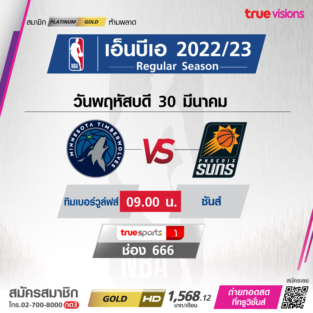 วันพฤหัสบดี 30 มี.ค. Timberwolves Vs Suns เวลา 09.00 ทางช่อง TS 1 (666)