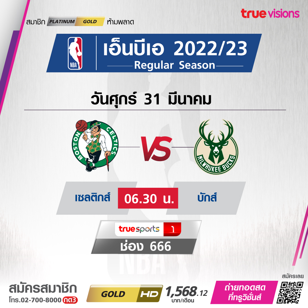 วันศุกร์ 31 มี.ค. Celtics Vs Bucks เวลา06.30 ทางช่อง TS 1 (666)