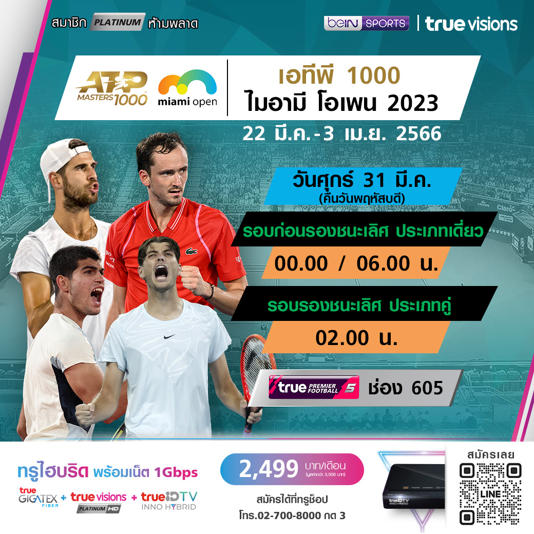 เทนนิสหญิง ดับเบิลยูทีเอทัวร์ 1000 ซีรีส์ ไมอามี โอเพน ชิงเงินรางวัลรวมกว่า 8.8 ล้านเหรียญสหรัฐ เข้าสู่รอบรองชนะเลิศ ร่วมลุ้นและเชียร์ นักเทนนิส ระดับโลก ทางทรูวิชั่นส์