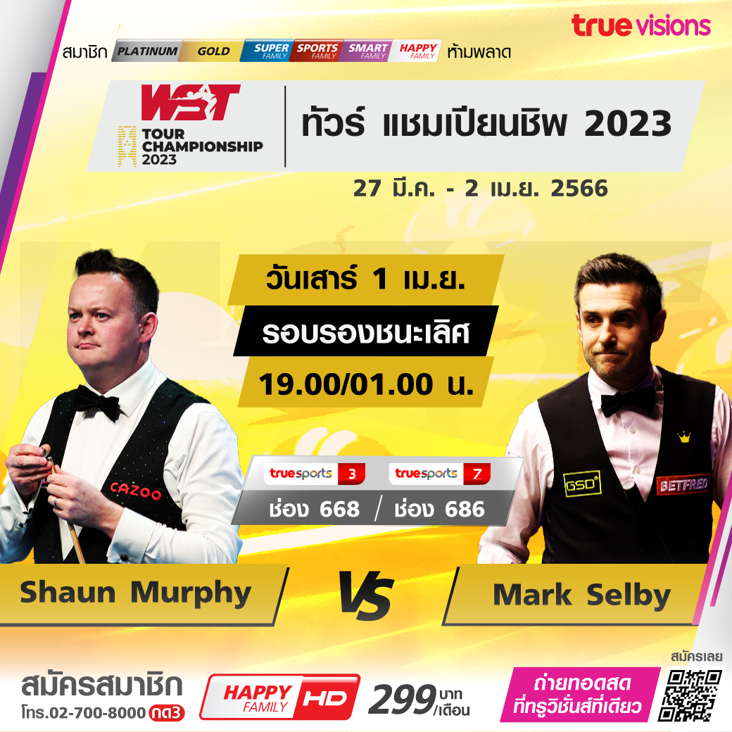 รายการสำคัญของสนุกเกอร์เก็บคะแนนสะสมโลก ศึก ทัวร์ แชมเปี้ยนชิพ ที่เมืองฮัลล์ ประเทศอังกฤษ มาถึงในรอบรองชนะเลิศ ใครจะก้าวไปเป็นแชมป์ ชมสด ทาง ทรูวิชั่นส์ ที่เดียว