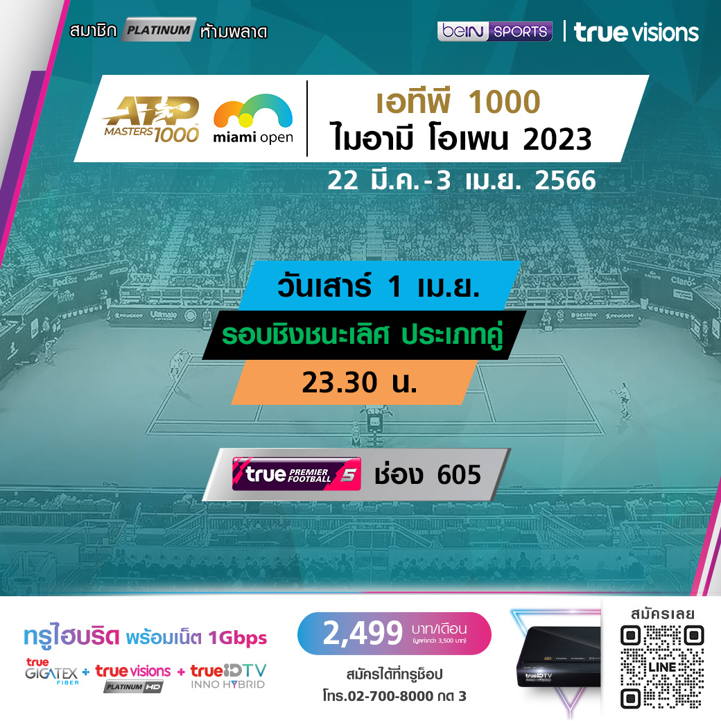 เทนนิสหญิง ดับเบิ้ลยูทีเอ ทัวร์ 1000 ซีรีส์ ไมอามี่ โอเพ่น ชิงเงินรางวัลรวมกว่า 8.8 ล้านเหรียญสหรัฐฯ เดินทางมาถึงในรอบชิงชนะเลิศ ใครจะก้าวสู่ตำแหน่งแชมป์ปีนี้ ชมสดครบทุกรอบ ทางทรูวิชั่นส์