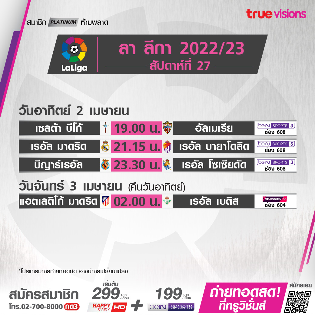 Atletico vs Real Betis เวลา 02.00-04.00 ทางช่อง TPF 4 (604)