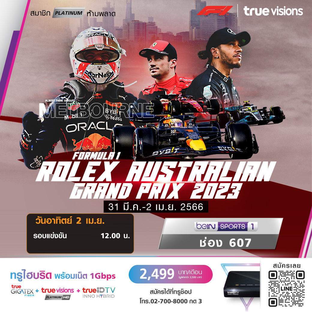 ศึกฟอร์มูลาวัน เวิลด์ แชมเปี้ยนชิพ สนามที่ 3 ของฤดูกาล 2023 กับรายการ ออสเตรเลียน กรังด์ปรีซ์ ในรอบแข่งขัน ใครจะคว้าแชมป์สนามนี้ไปได้ ชมสด ทาง ทรูวิชั่นส์ ที่เดียว