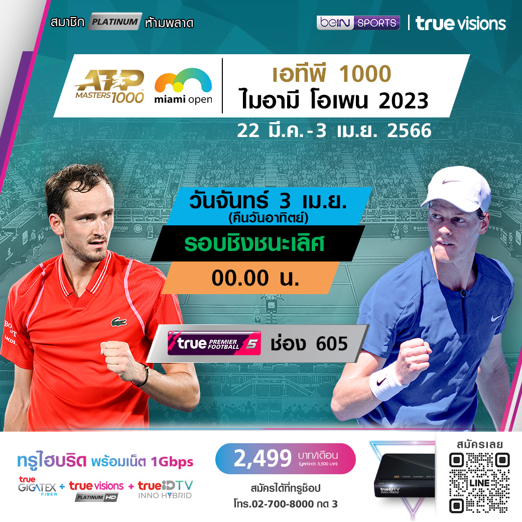 ศึกเทนนิส เอทีพี เวิลด์ ทัวร์ 1000 ซีรีส์ ไมอามี่ โอเพ่น ที่ ฮาร์ด ร็อค สเตเดี้ยม ในไมอามี่ รัฐฟลอริด้า เข้าสู่ในรอบชิงชนะเลิศ ใครจะคว้าแชมป์ไปครอง ชมสด ที่ทรูวิชั่นส์