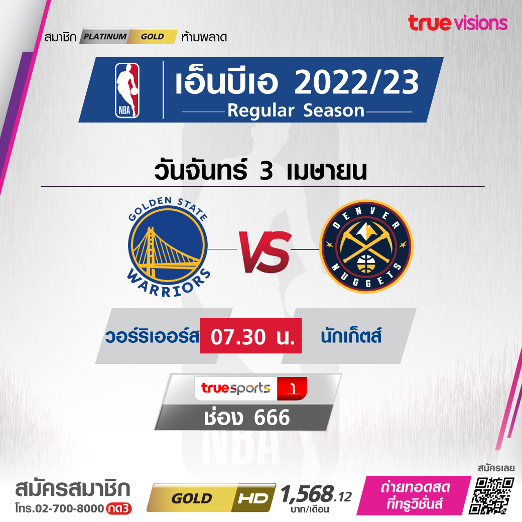 วันจันทร์ 3 เม.ย. Warriors Vs Nuggets เวลา07.30 ทางช่อง TS 1 (666)