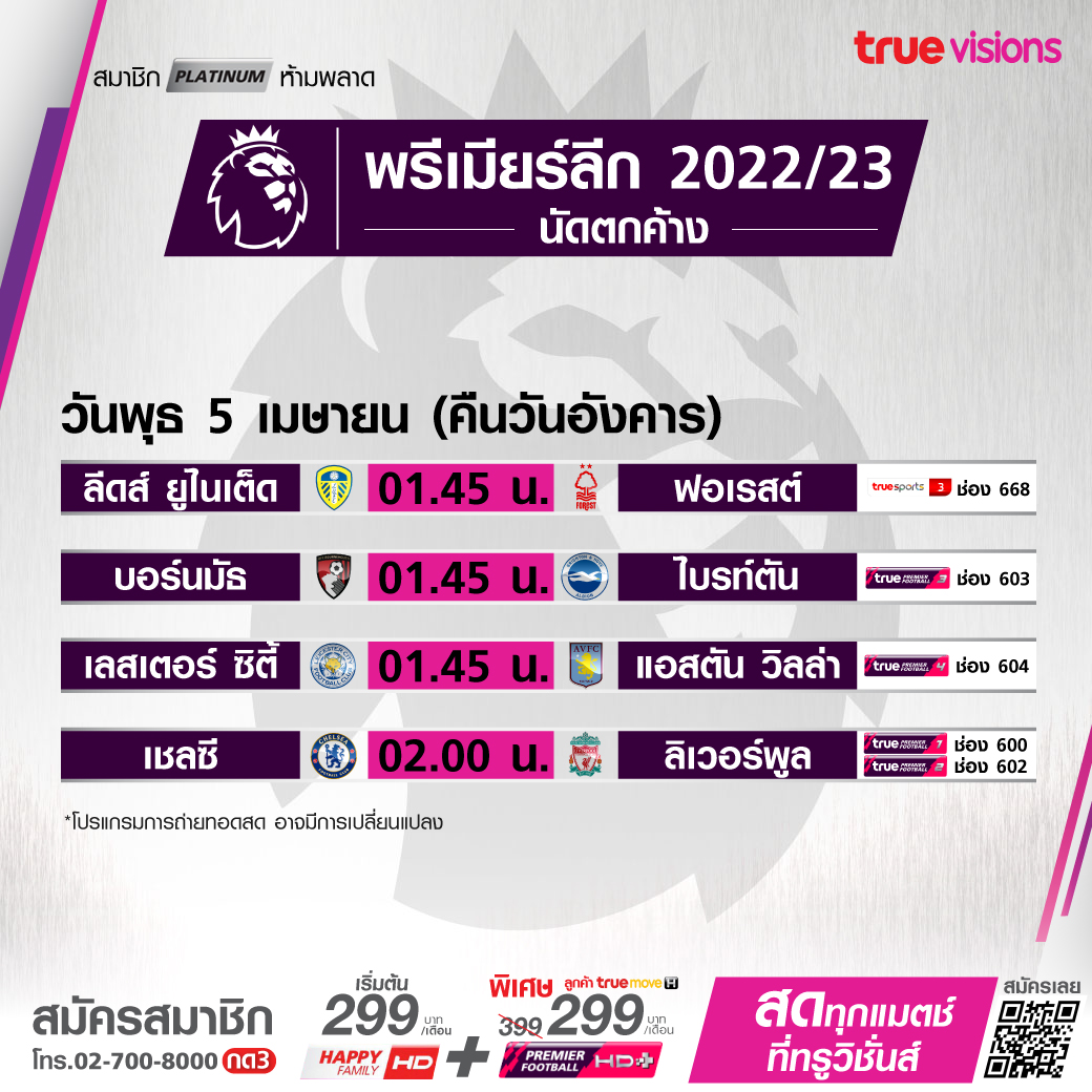 Bournemouth vs Brighton เวลา 01:45 - 03:45 ทางช่อง TPF 3 (603)