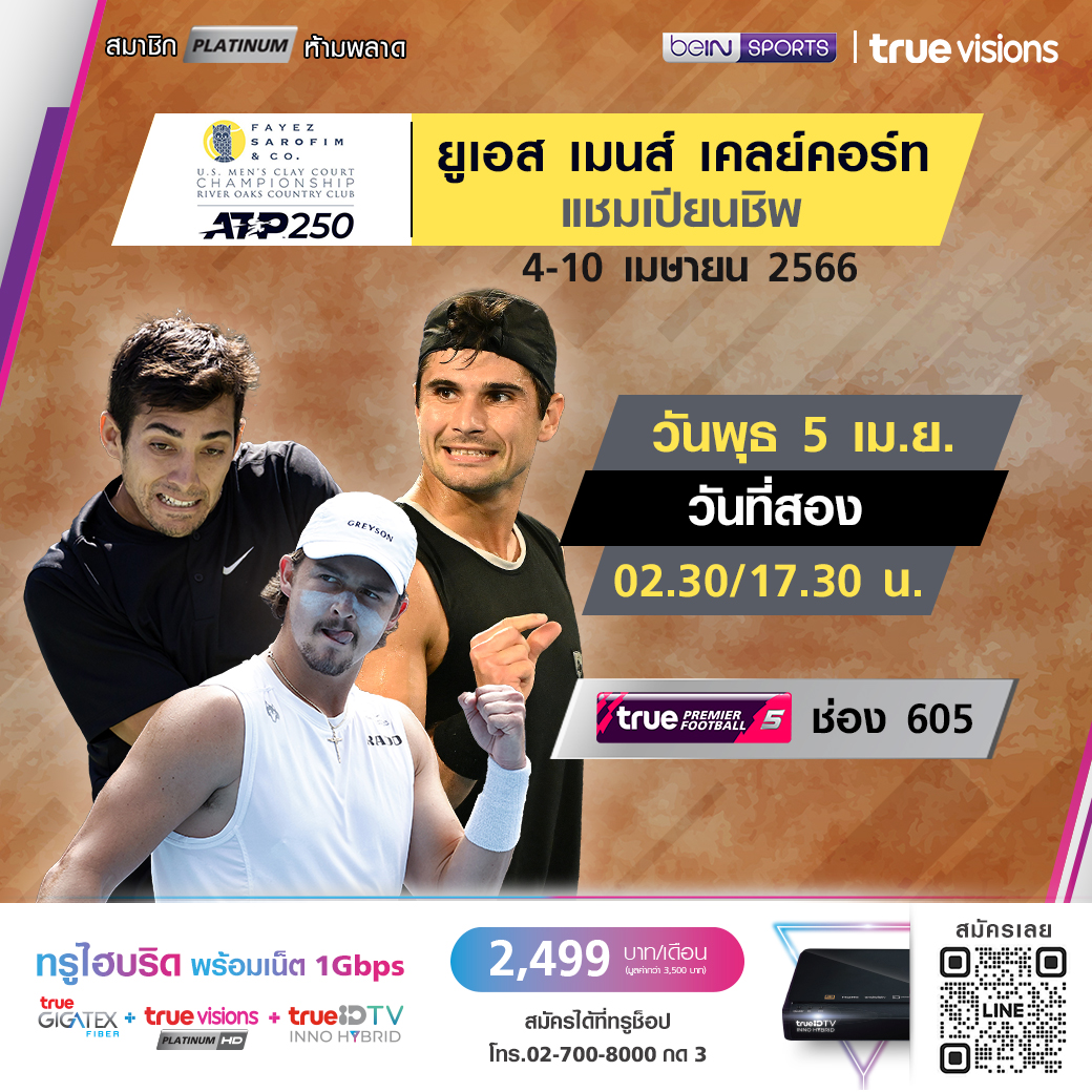 เทนนิสชาย เอทีพี ทัวร์ 250 ซีรี่ส์ ยูเอส เมนส์ เคลย์คอร์ต แชมเปี้ยนชิพ 2023 กับการแข่งขันบนพื้นสนามคอร์ตดินสัปดาห์แรกของฤดูกาล ที่ ฮิวสตัน รัฐเท็กซัส ร่วมเชียร์ว่าใครจะเป็นแชมป์ปีนี้ ชมสดจุใจที่ ทรูวิชั่นส์
