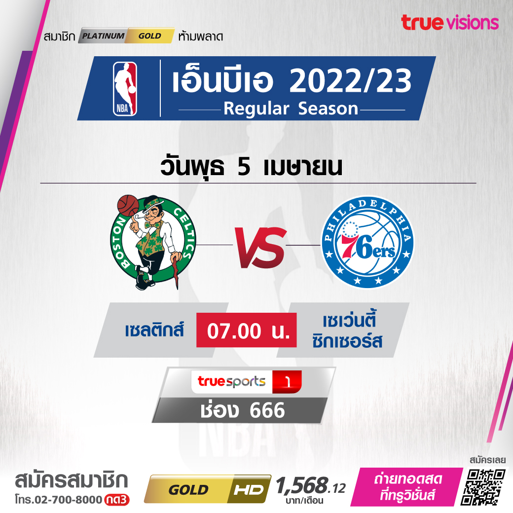 วันพุธ 5 เม.ย. Celtics Vs 76ERS เวลา 07.00 ทางช่อง TS 1 (666)