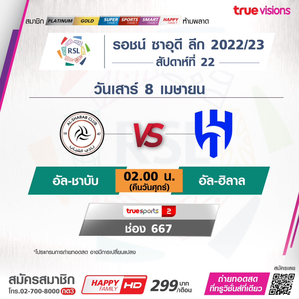 Al-Shabab vs Al-Hilal เวลา 02.00-04.00 ทางช่อง TS 2 (667)