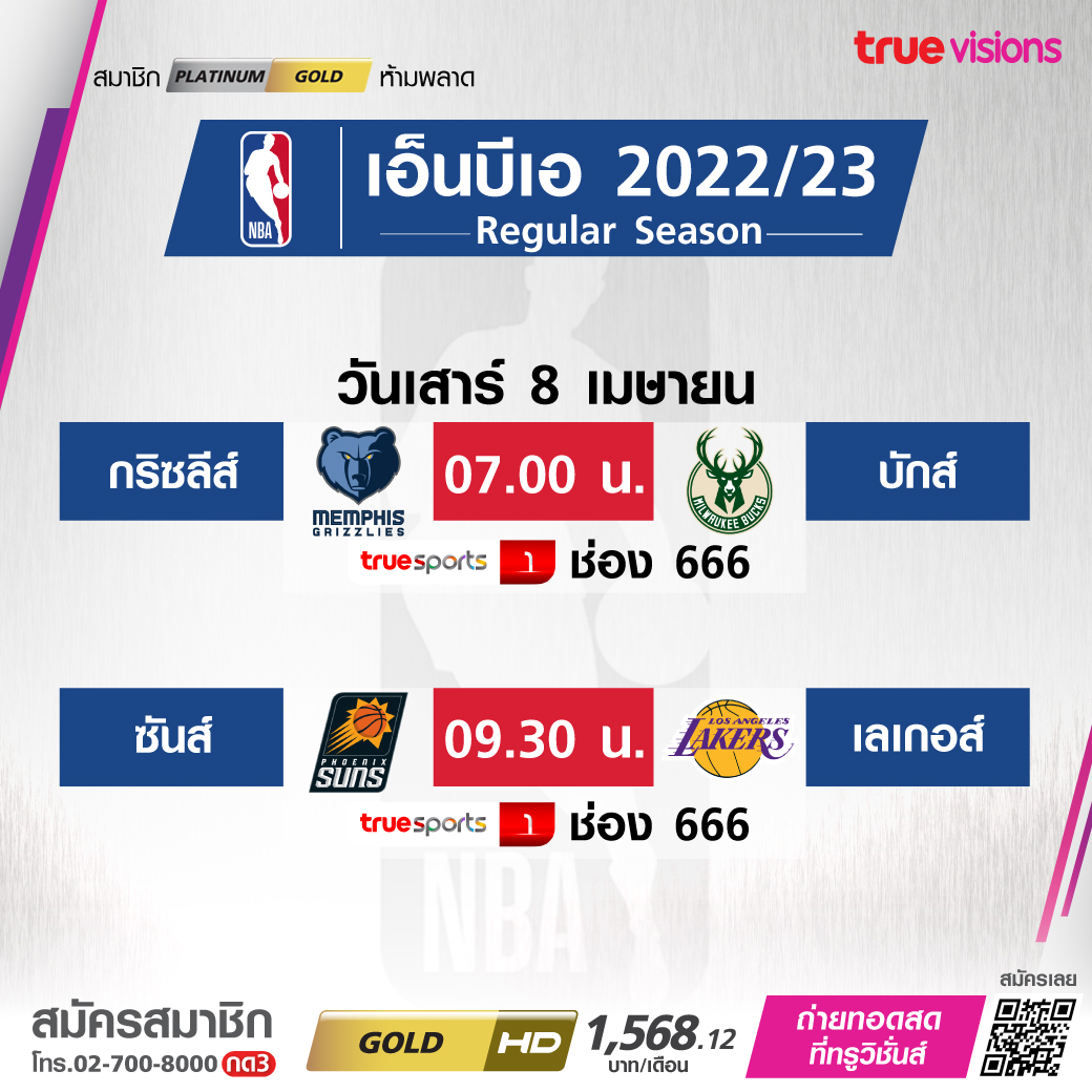 วันเสาร์ 8 เม.ย. Suns Vs Lakers เวลา 09.30 ทางช่อง TS 1 (666)