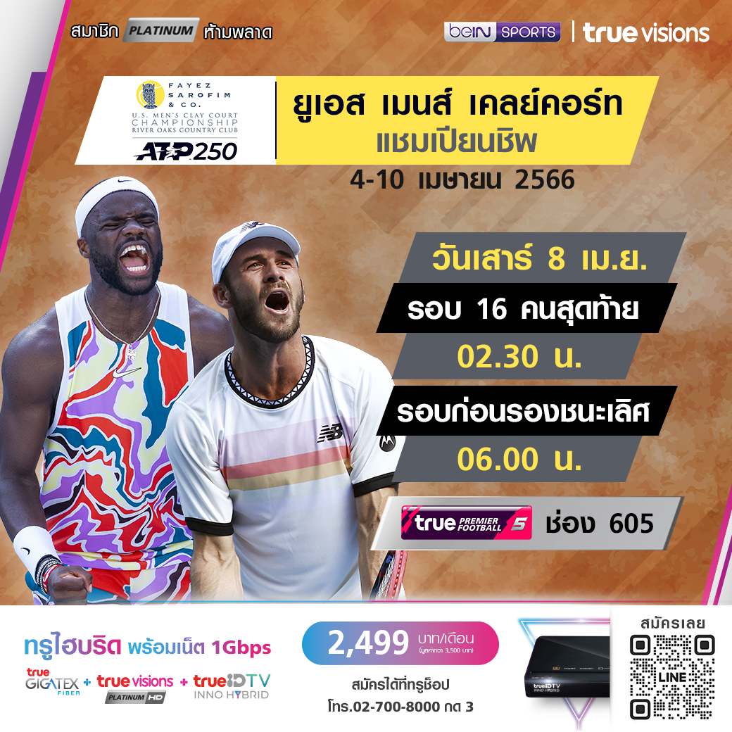 เทนนิสชาย เอทีพี ทัวร์ 250 ซีรี่ส์ ยูเอส เมนส์ เคลย์คอร์ต แชมเปียนชิพ 2023 กับการแข่งขันบนพื้นสนามคอร์ตดิน สัปดาห์แรกของฤดูกาล ที่ ฮิ้วจ์สตัน รัฐเท็กซัส ร่วมเชียร์ว่าใครจะเป็นแชมป์ปีนี้ ชมสดจุใจ