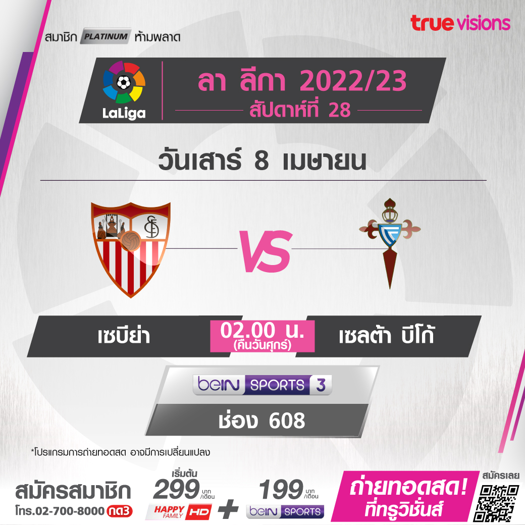Sevilla vs Celta เวลา 02.00-04.00 ทางช่อง beIN 3 (608)