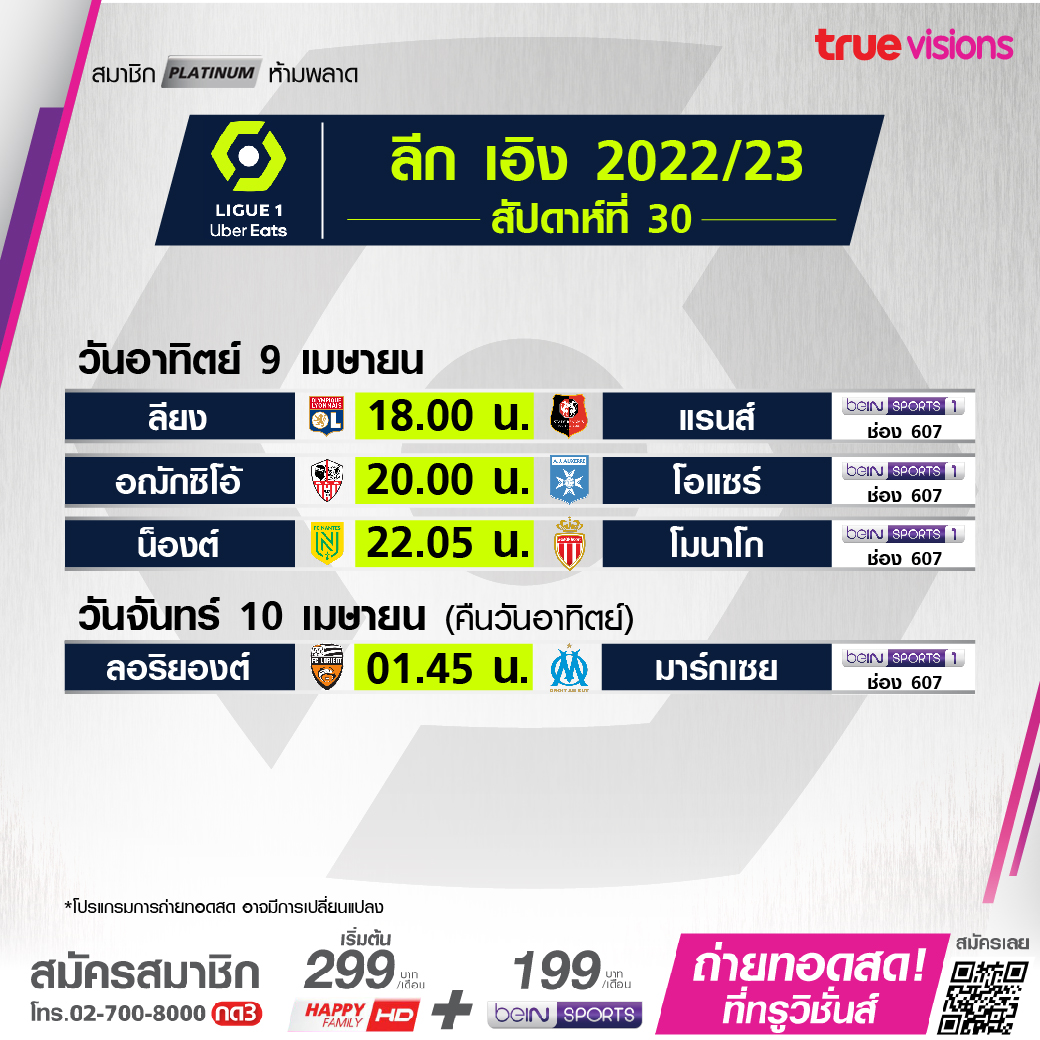 Lorient vs Marseille เวลา 01.45-03.45 ทางช่อง beIN 1 (607)