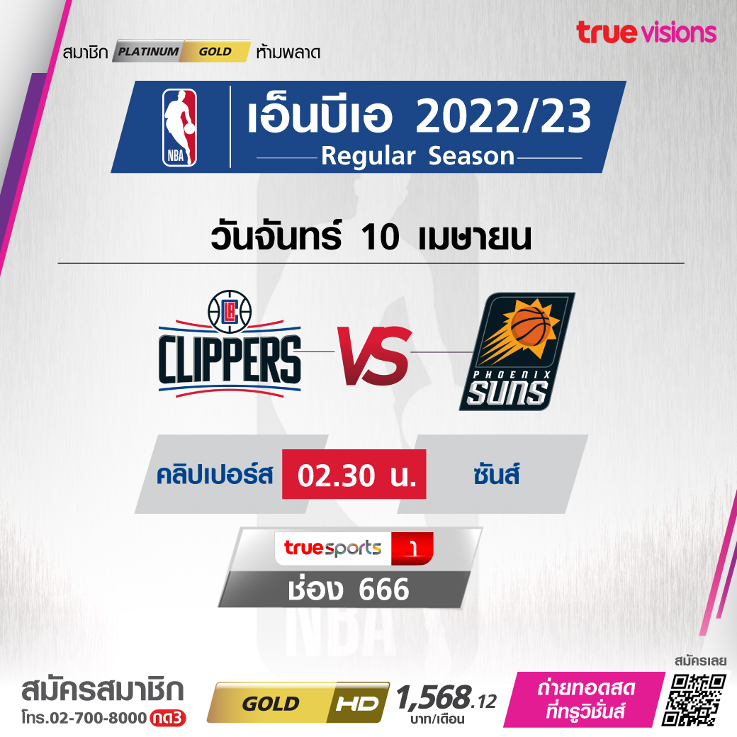 วันจันทร์ 10 เม.ย. Clippers Vs Suns เวลา 02.30 ทางช่อง TS 1 (666)