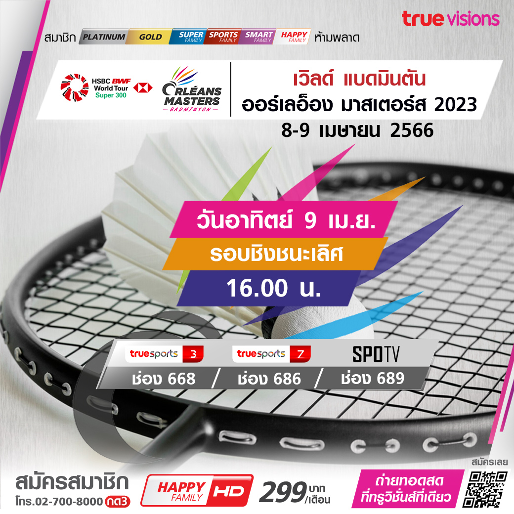 ตบกันต่อเนื่องไม่มีหยุดพัก สำหรับแบดมินตันเก็บคะแนนสะสมโลก สัปดาห์นี้นัดมาพิสูจน์ฝีมือกันที่แดนน้ำหอมฝรั่งเศส กับรายการ ออร์เลอ็อง มาสเตอร์ส 2023 รายการระดับเวิลด์ ทัวร์ ซูเปอร์ 300 ชมสดทาง ทรูวิชั่นส์