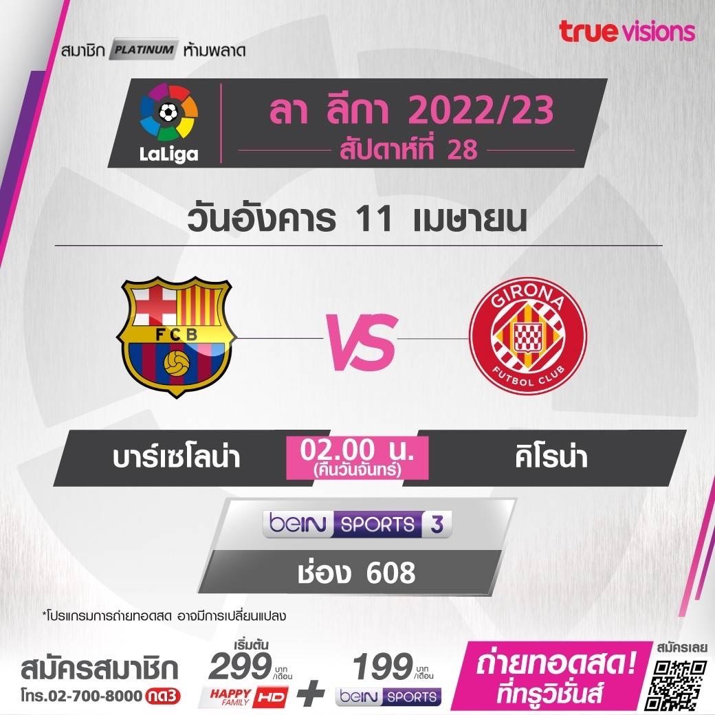 Barcelona vs Girona เวลา 02.00-04.00 ทางช่อง beIN 3 (608)
